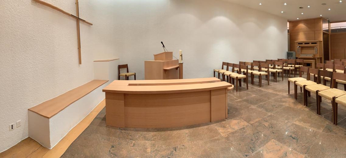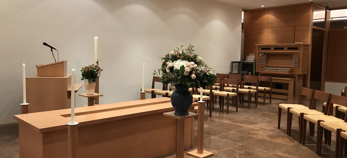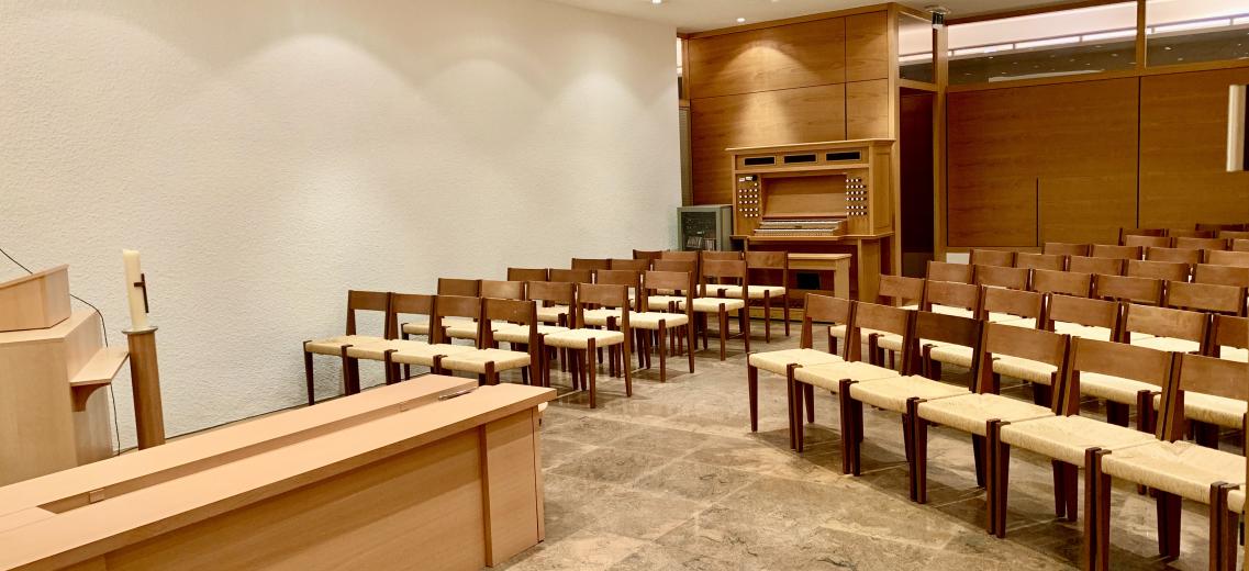 Doté d'un orgue et d'un équipement sonore (CD ou cassette), le lieu de cérémonie offre environ 70 places.